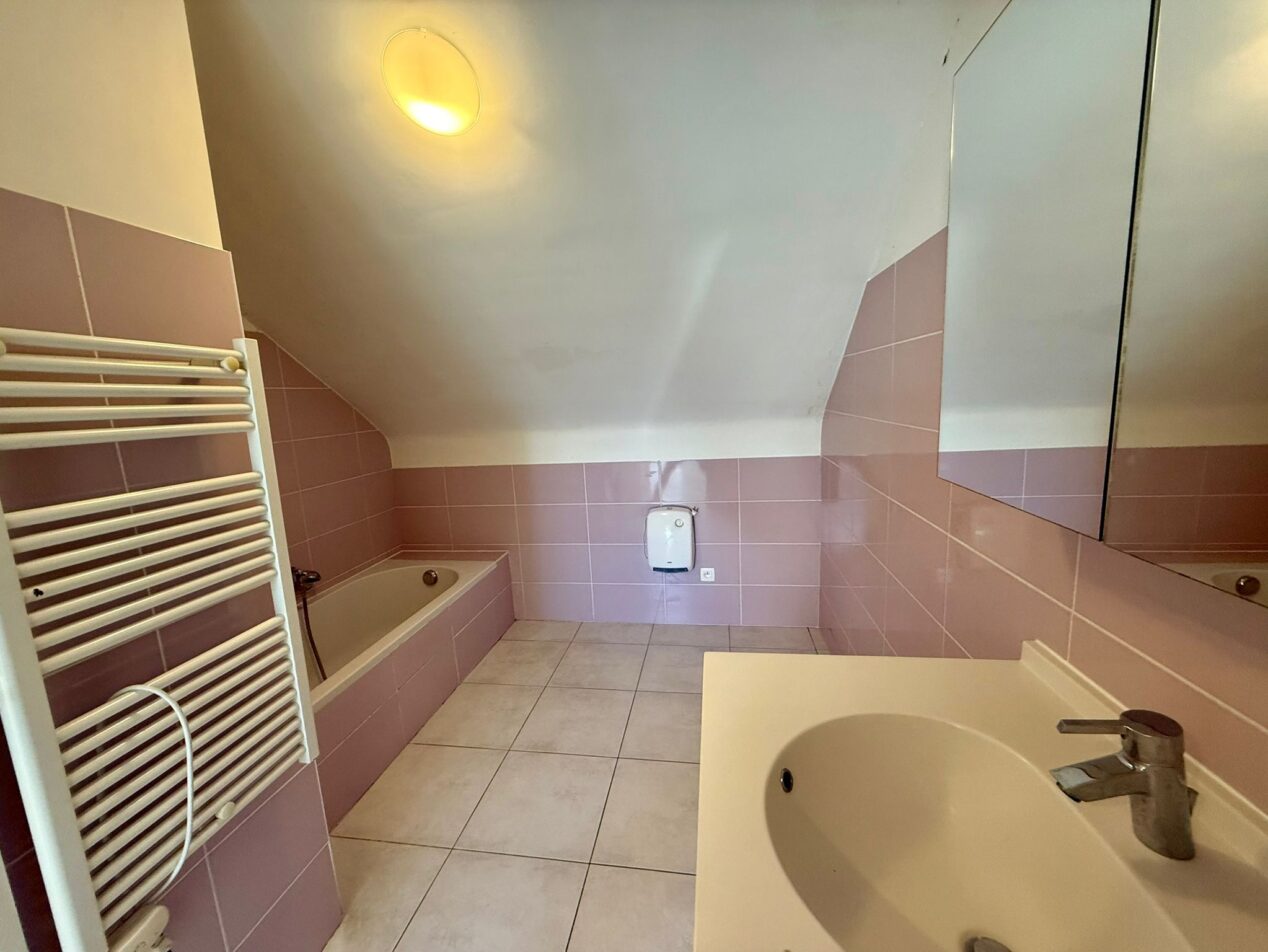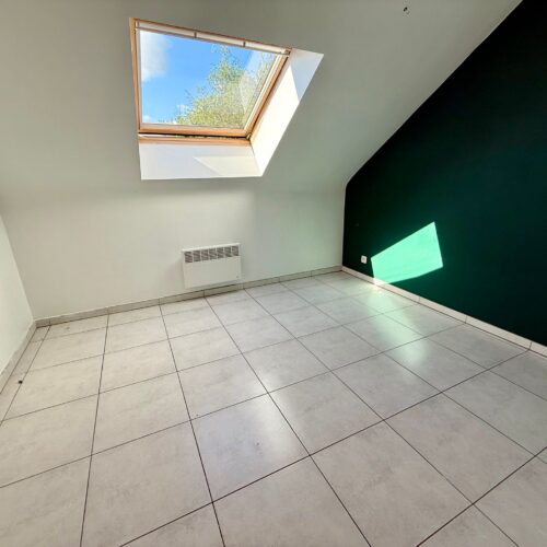 Hall d'entrée desservant, le séjour, cuisine équipée, salle de bain, chambre.