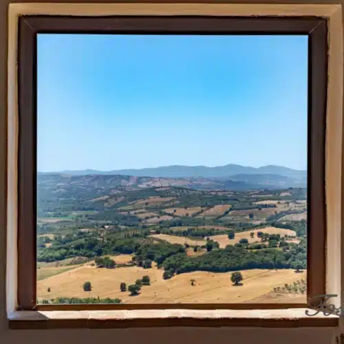 Laissez-vous séduire par la vue qui s’offre à vous comme un tableau : les douces collines toscanes, le ciel se teintant de nuances magiques au coucher du soleil, et le silence qui murmure les secrets d’époques lointaines.