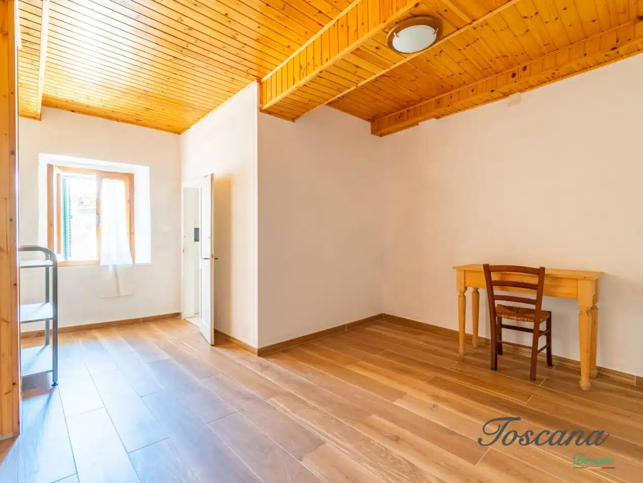 La propriété rénovée est habitable immédiatement : la solution idéale pour ceux qui recherchent une résidence secondaire dans un village médiéval authentique, parfaite également comme investissement touristique.DESCRIPTION DES PIÈCESPremier étage : salon avec une magnifique cheminée et un coin cuisine, chambre double, grand couloir menant à la petite chambre ou au bureau et à la salle de bains avec fenêtre. Au rez-de-chaussée se trouve une cave.